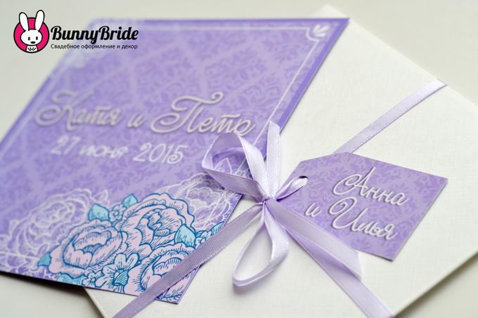 Приглашения в европейском стиле с конвертом из дизайнерской бумаги с бирочкой с именами гостей.
